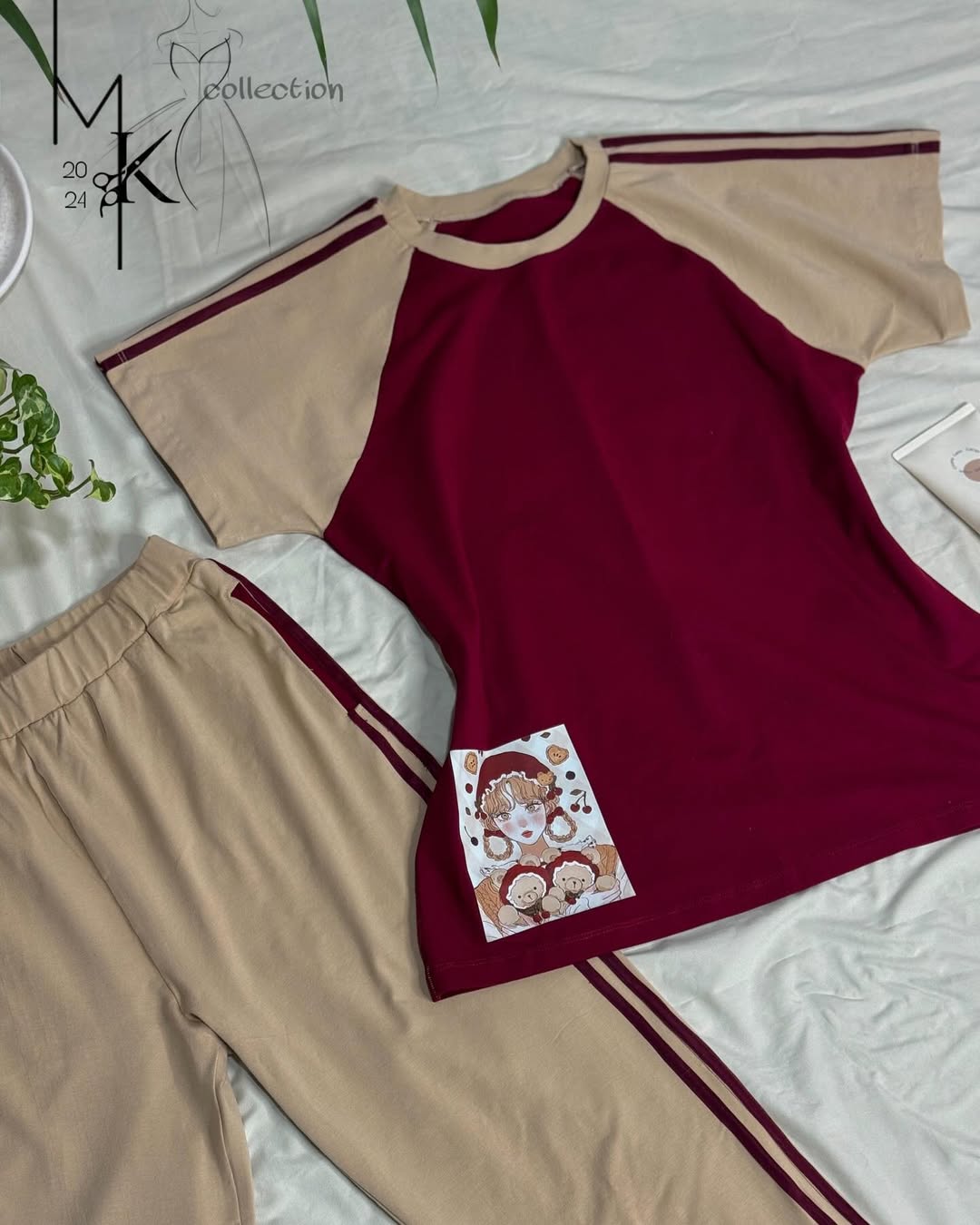 ست شلوار و تی‌شرت پنبه لاکرا کشی پاییزه